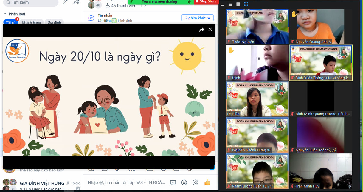 Các bạn học sinh lớp 5A3 xem video sinh hoạt dưới cờ tìm hiểu ngày 20/10