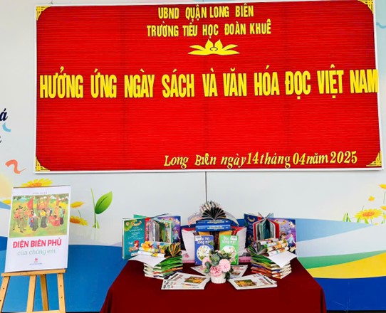 Nhằm hưởng ứng Ngày Sách Việt Nam, Trường Tiểu học Đoàn Khuê tổ chức buổi tuyên truyền đặc biệt trong lễ chào cờ đầu tuần với các hoạt động sôi nổi và bổ ích: Giới thiệu một số cuốn sách hay về chiến thắng Điện Biên Phủ như Cuốn Sách “Điện Biên Phủ của chúng em” do NXB Kim Đồng ấn hành sau đó tổ chức trò chơi “Hiểu sách – Nhận quà”: học sinh tham gia trả lời các câu hỏi xoay quanh nội dung cuốn sách vừa được giới thiệu để nhận phần thưởng hấp dẫn. Đây là cách giúp các em vừa đọc, vừa ghi nhớ và thêm yêu sách hơn.