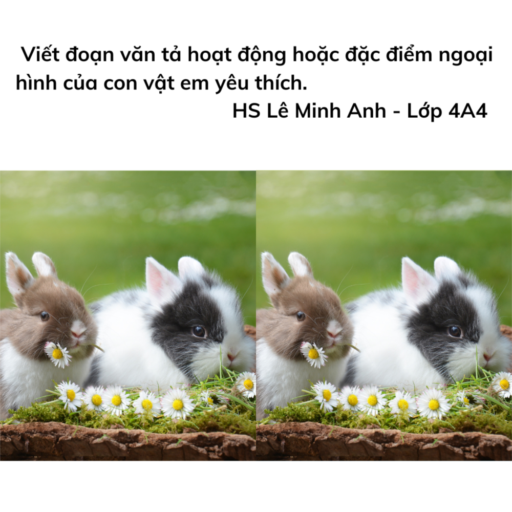 Chú thỏ con nhà em có ngoại hình nhỏ nhắn, đáng yêu vô cùng. Bộ lông của chú mềm mượt, màu trắng tinh. Trông nó như cục bông tròn xinh xắn. Em rất thích được vuốt ve bộ lông mềm mại ấy. Đôi tai dài và mỏng, lúc nào cũng vểnh lên như đang lắng nghe mọi âm thanh xung quanh. Đôi mắt tròn xoe, màu đỏ hồng, lấp lánh như hai viên ngọc nhỏ, khiến ai nhìn cũng phải thích thú. Cái mũi hồng bé xíu luôn động đậy, kèm theo những sợi ria nhỏ rung rung trông rất dễ thương. Bốn chân ngắn nhưng khỏe, bàn chân có lớp lông mềm giúp chú di chuyển rất nhẹ nhàng. Đặc biệt, chiếc đuôi tròn, ngăn ngắn như một cục bông nhỏ, mỗi lúc di chuyển lại khẽ rung rinh, làm tăng thêm vẻ ngây thơ của Thỏ con. Trông chú yêu ơi là yêu!
