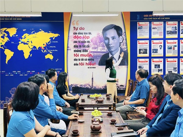 Đón tiếp Đồng chí Phạm Quang Thanh - Ủy viên Đoàn chủ tịch Tổng Liên đoàn Lao động Việt Nam, Thành ủy viên, Chủ tịch Liên đoàn Lao động Thành phố Hà Nội và Đồng chí Đường Hoài Nam - Thành ủy viên, Bí thư Quận ủy, Chủ tịch HĐND quận Long Biên về thăm Không gian Văn hoá Hồ Chí Minh